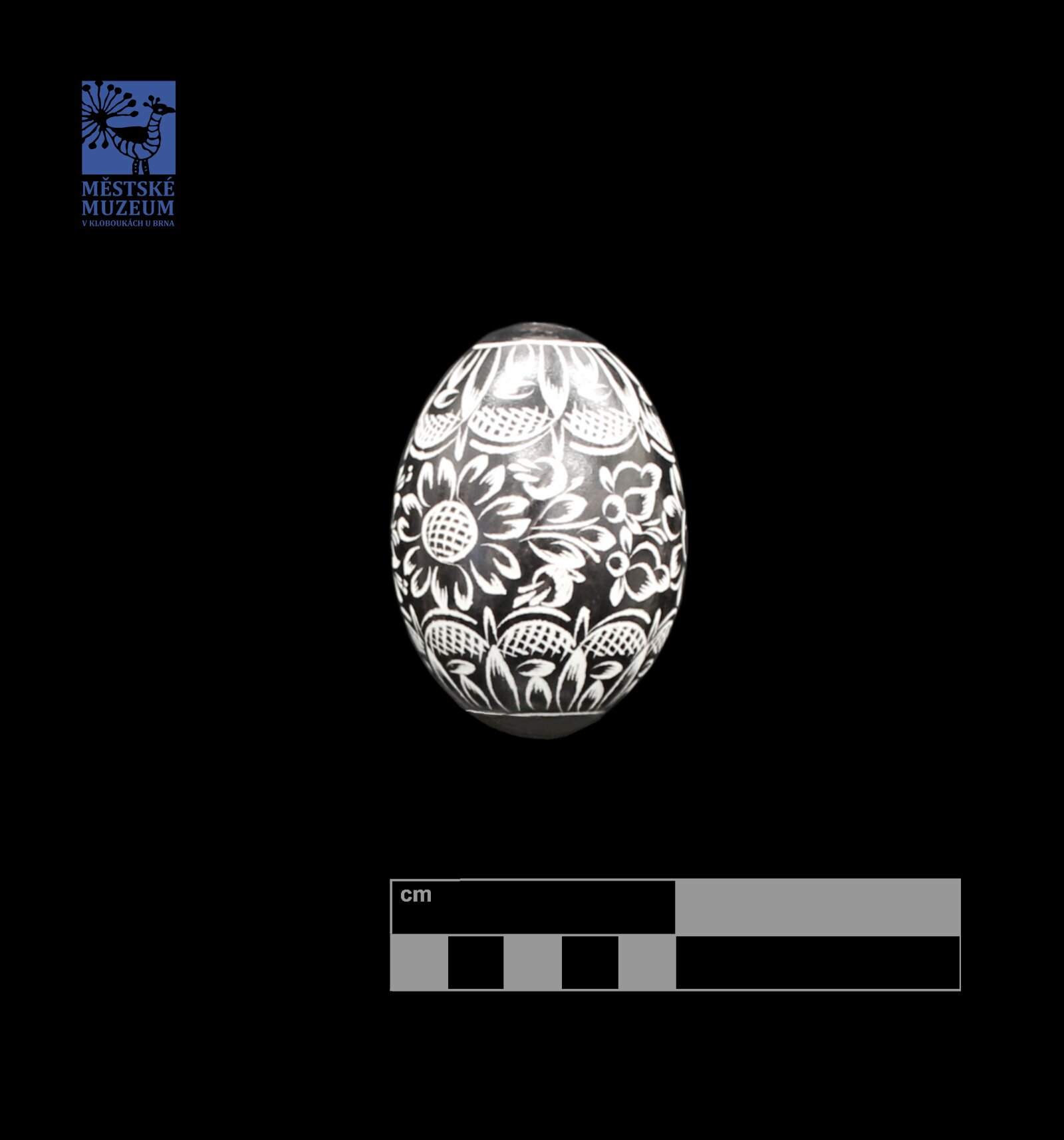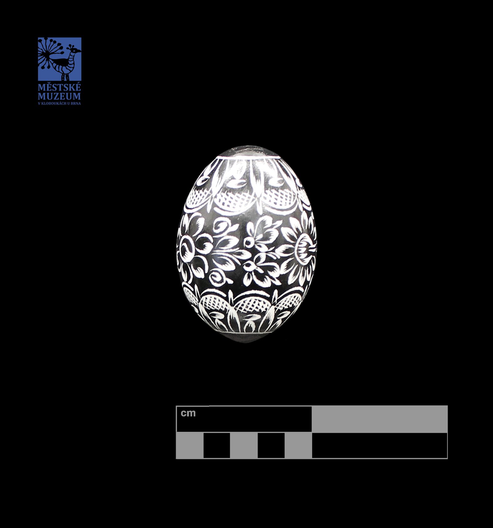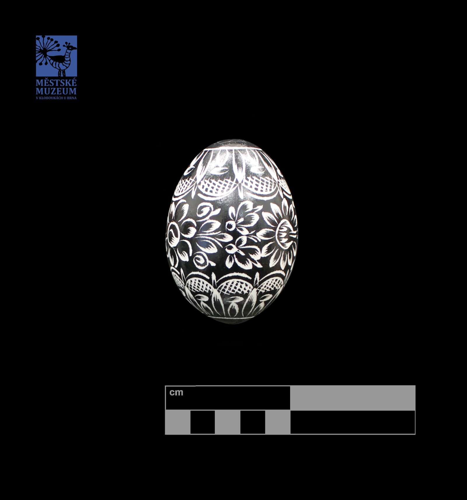 Velikonoční vájíčko zdobené technikou tzv. vyškrabávání do předěm obarvené skořápky ostrým předmětem (nožem, rydlem, pilníkem apod.).