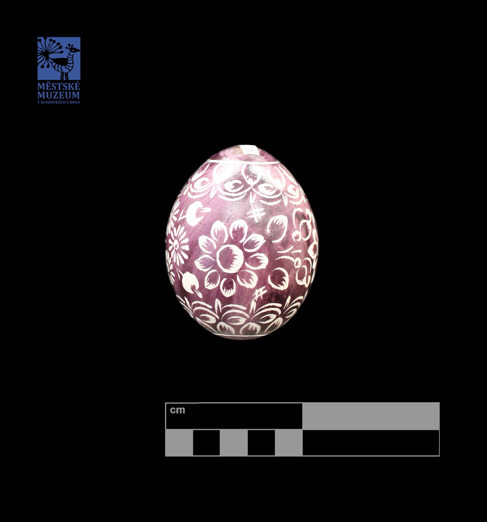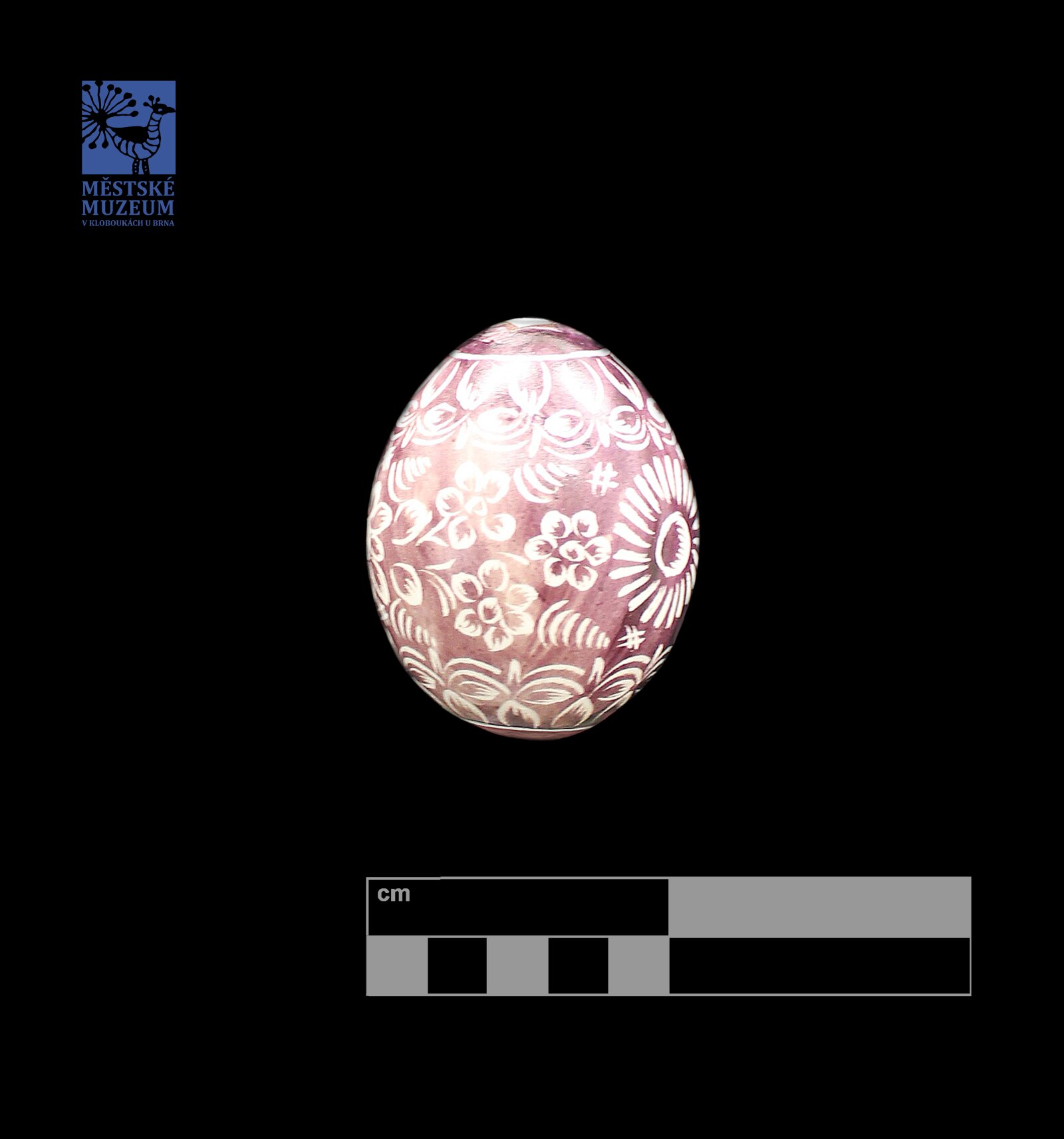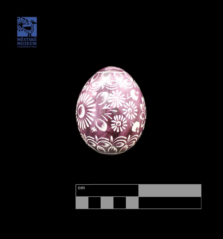 Velikonoční vájíčko zdobené technikou tzv. vyškrabávání do předěm obarvené skořápky ostrým předmětem (nožem, rydlem, pilníkem apod.).